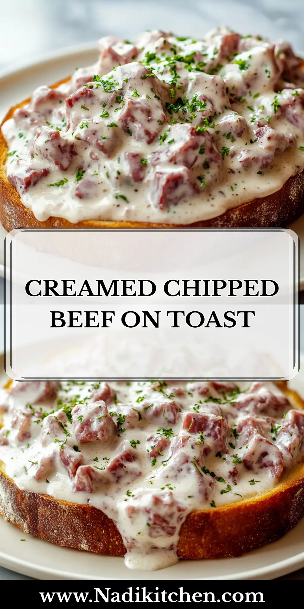 Serve over Toast: Divide the creamy chipped beef mixture over the toasted bread slices. Enjoy it while it's warm for breakfast, lunch, or a cozy dinner.