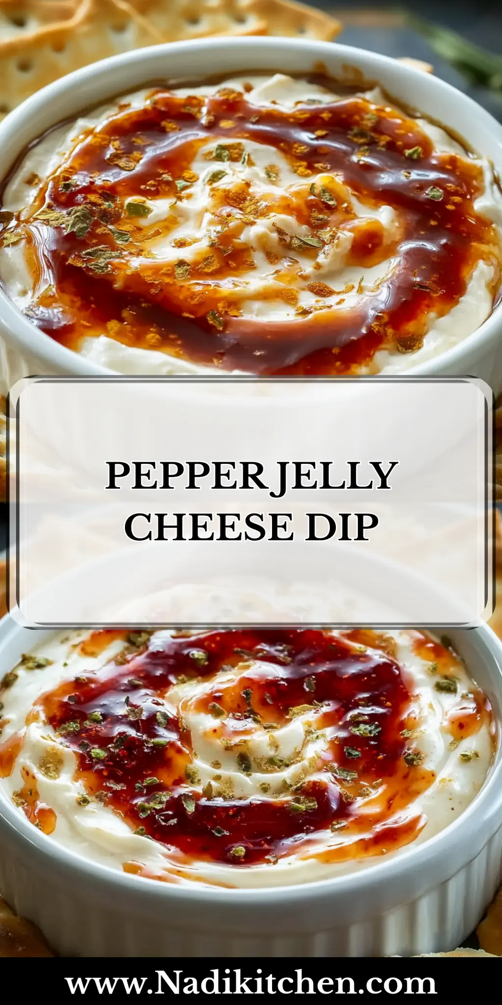 Spread and Top: Transfer the dip into a serving dish, spreading it evenly. Pour 0.5 cup of pepper jelly over the top, allowing it to cascade beautifully for a stunning presentation.